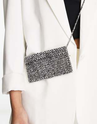 ASOS DESIGN - Borsetta a tracolla argentata con perline