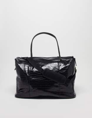 ASOS DESIGN - Borsone da weekend elegante strutturato in coccodrillo sintetico nero