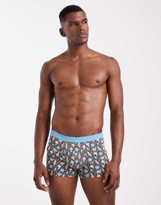 ASOS DESIGN - Boxer natalizi blu con grafica con decorazioni