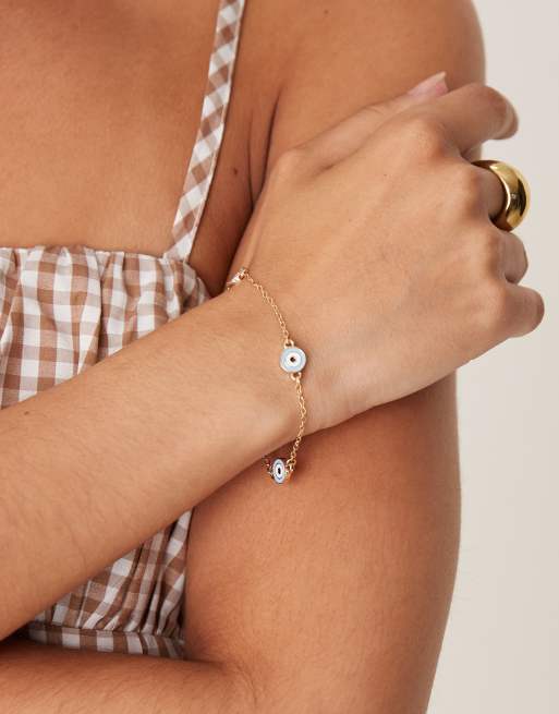 ASOS DESIGN - Bracciale a catena semplice dorato con occhio azzurro