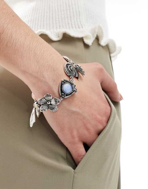 ASOS DESIGN - Bracciale argentato con charm e pietre sintetiche - Edizione limitata
