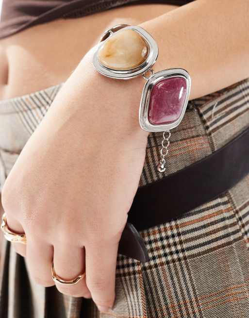 ASOS DESIGN - Bracciale color argento con pietre sintetiche semipreziose in edizione limitata