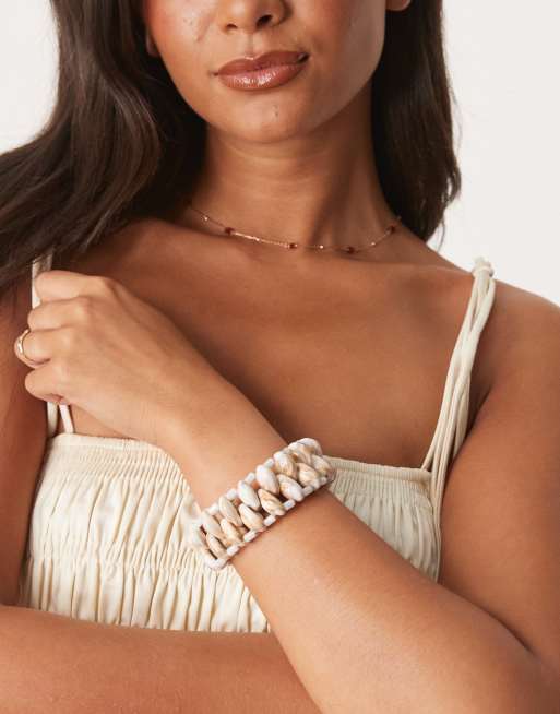 ASOS DESIGN - Bracciale elasticizzato a fascia con conchiglie sintetiche