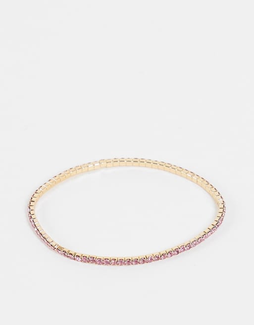 ASOS DESIGN - Bracciale elasticizzato oro con cristalli rosa