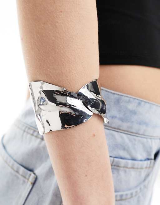 ASOS DESIGN - Bracciale rigido a fascia argentato con design effetto fuso