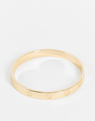 ASOS DESIGN - Bracciale rigido dorato con design con faccine