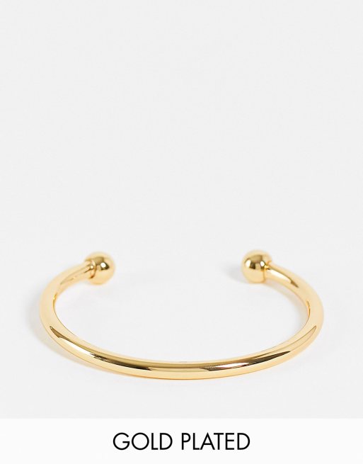 ASOS DESIGN - Bracciale rigido placcato oro 14k con estremità a sfera