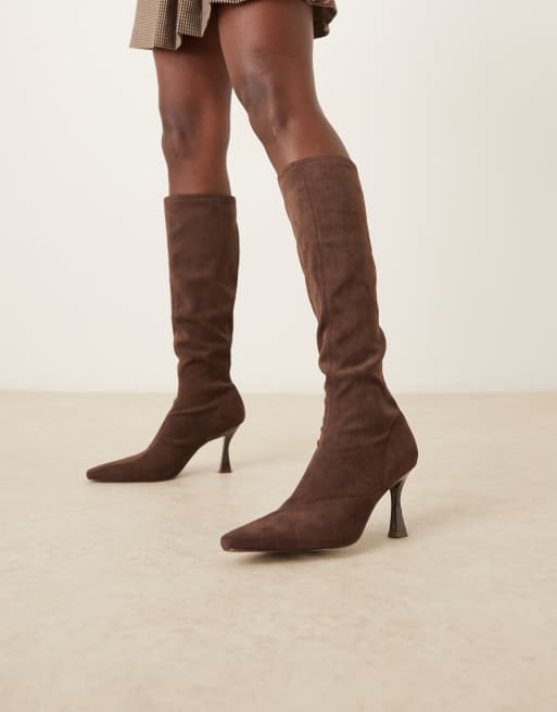 ASOS DESIGN - Caitlin - Stivali al ginocchio a calza con tacco in camoscio sintetico color cioccolato
