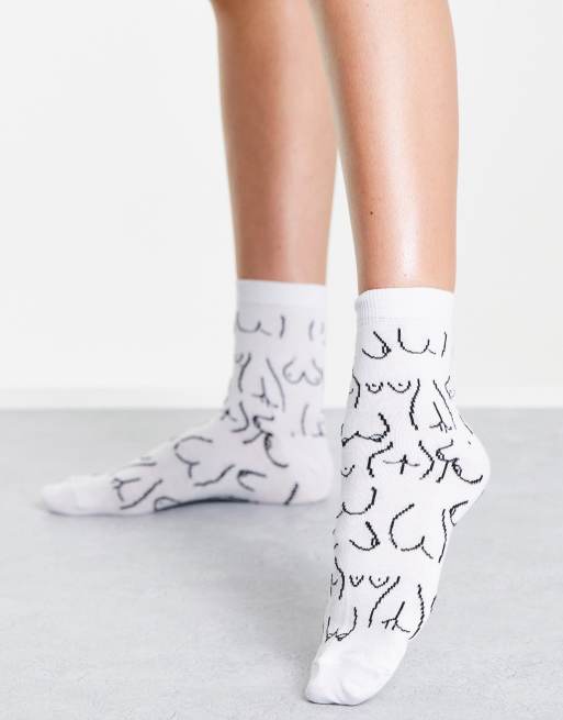 ASOS DESIGN - Calzini alla caviglia bianchi con stampa di corpi