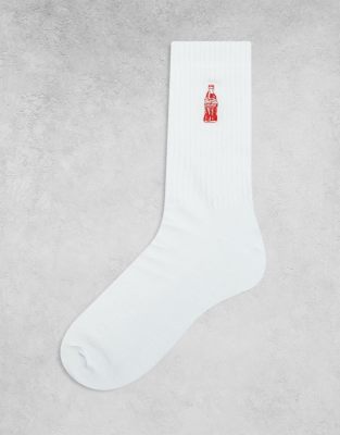 ASOS DESIGN - Calzini bianchi con bottiglia di Coca Cola ricamata