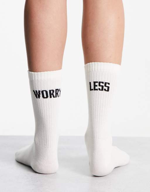 ASOS DESIGN - Calzini bianco sporco con scritta "Worry Less"