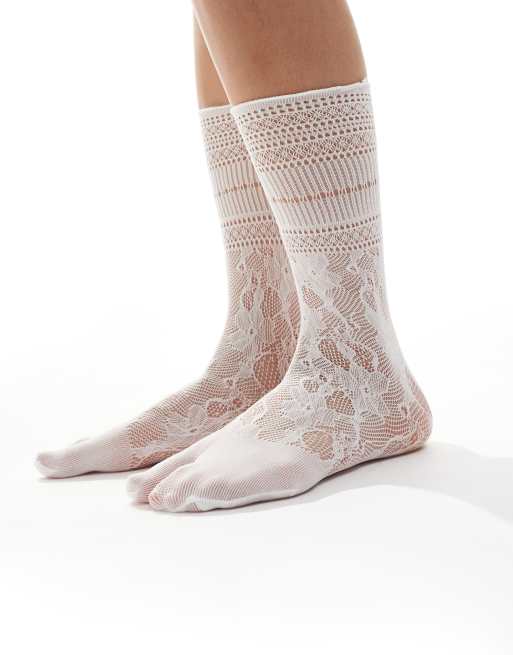 ASOS DESIGN - Calzini in pizzo bianchi trasparenti con design infradito