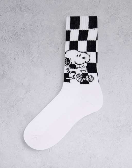 ASOS DESIGN - Calzini sportivi bianchi a scacchiera con Snoopy