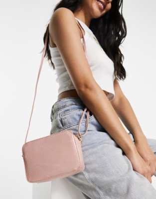 ASOS DESIGN - Camera bag con tracolla color cipria effetto coccodrillo
