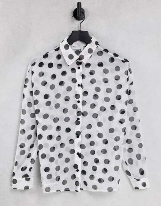 ASOS DESIGN - Camicia a maniche lunghe con stampa a pois monocromatica