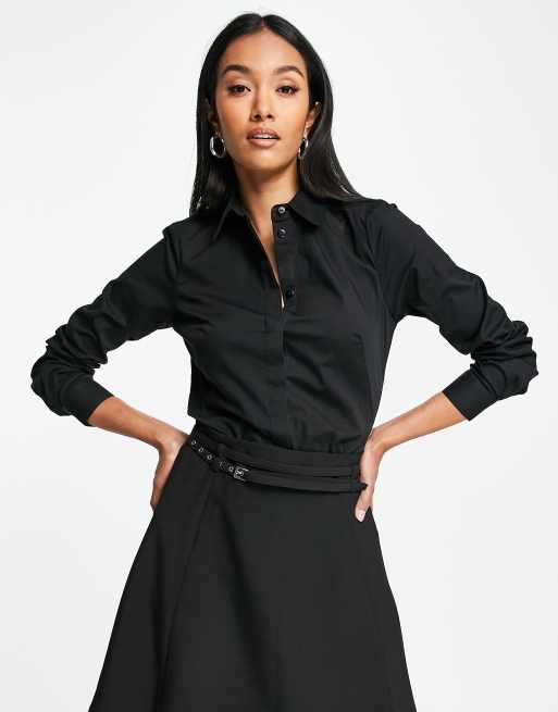 ASOS DESIGN - Camicia aderente a maniche lunghe nera