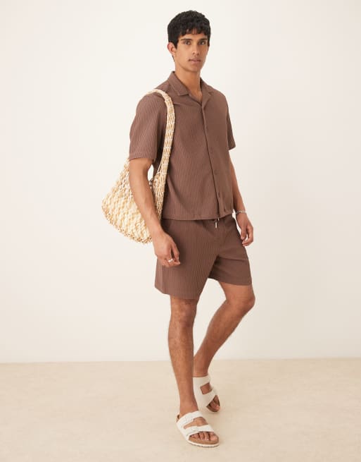ASOS DESIGN - Camicia ampia squadrata plissé marrone in coordinato
