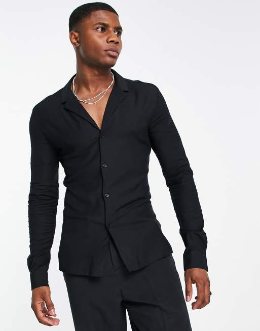 ASOS DESIGN - Camicia attillata in viscosa nera con rever