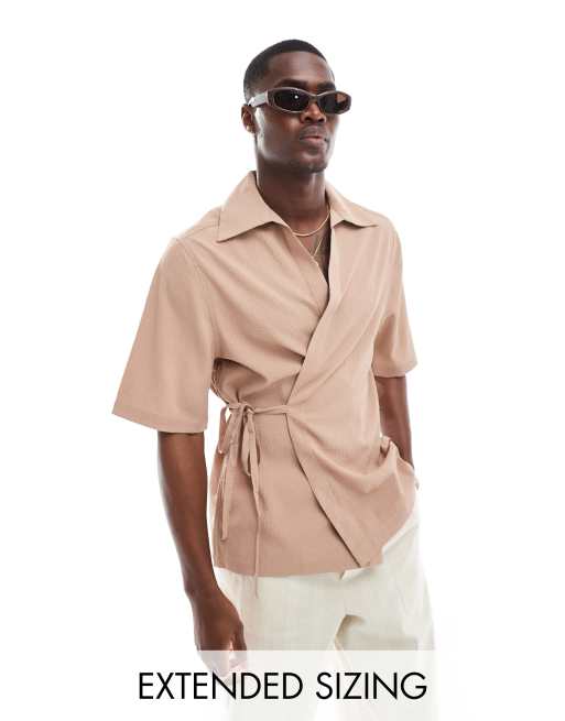 ASOS DESIGN - Camicia avvolgente testurizzata rosa polvere comoda