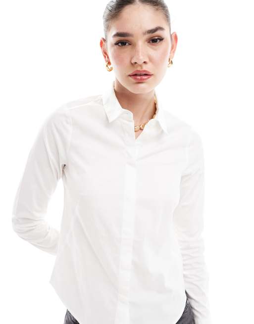 ASOS DESIGN - Camicia bianca aderente a maniche lunghe