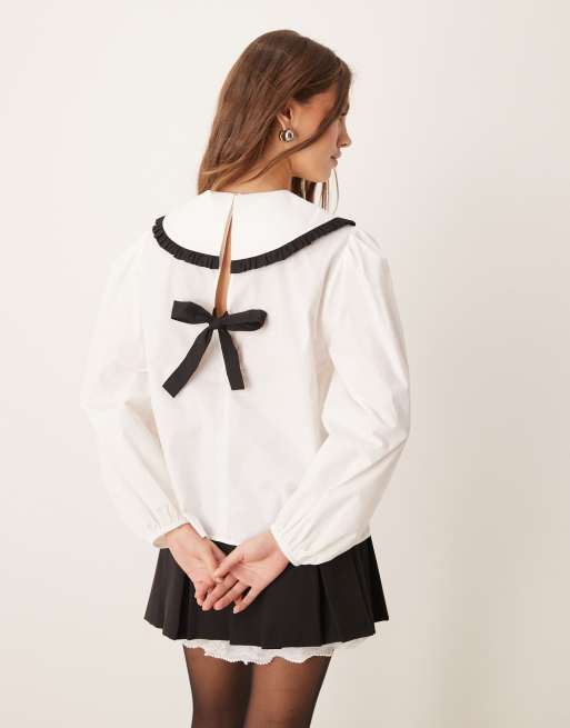 ASOS DESIGN - Camicia bianca con colletto oversize e fiocco sul retro