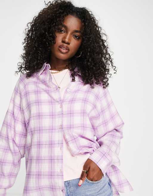 ASOS DESIGN - Camicia boyfriend a maniche lunghe a quadri lilla e rosa