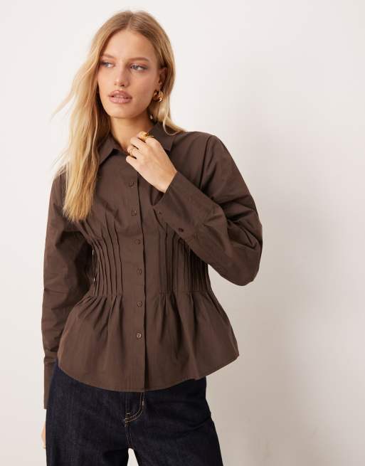 ASOS DESIGN - Camicia color cioccolato stretta in vita con pinces