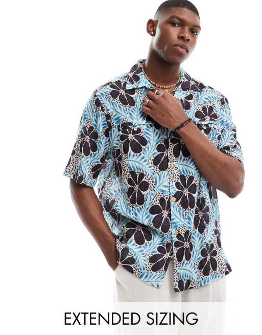 ASOS DESIGN - Camicia comoda a fiori con rever e stampa rétro