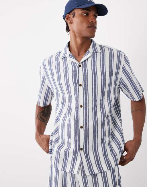 ASOS DESIGN - Camicia comoda a righe in misto lino blu navy e bianco in coordinato