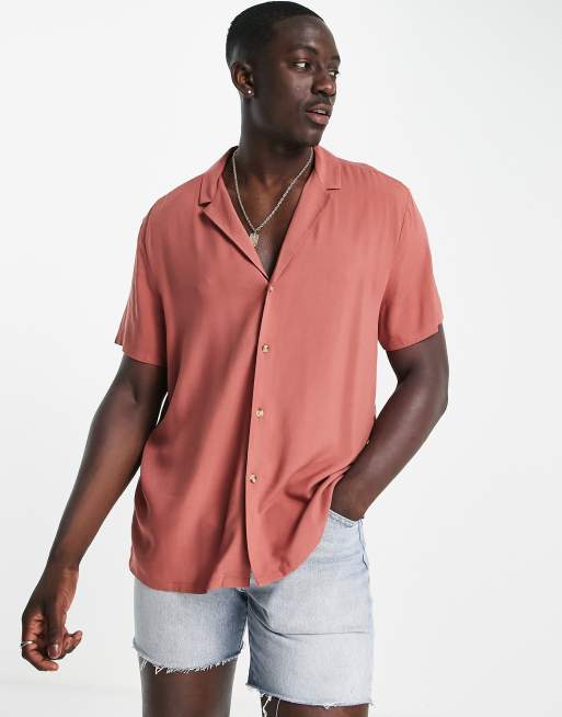 ASOS DESIGN - Camicia comoda in viscosa rosso mattone con colletto a rever