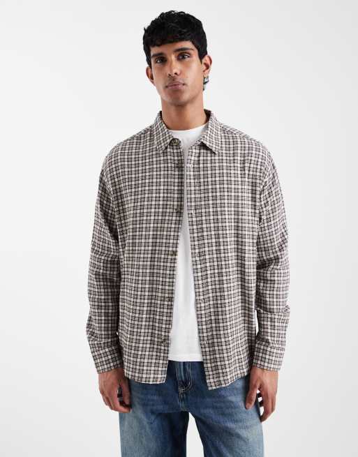 ASOS DESIGN - Camicia comoda marrone testurizzata a quadri
