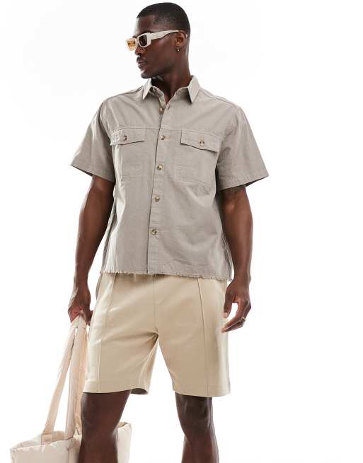 ASOS DESIGN - Camicia comoda squadrata grigia con bordo invecchiato