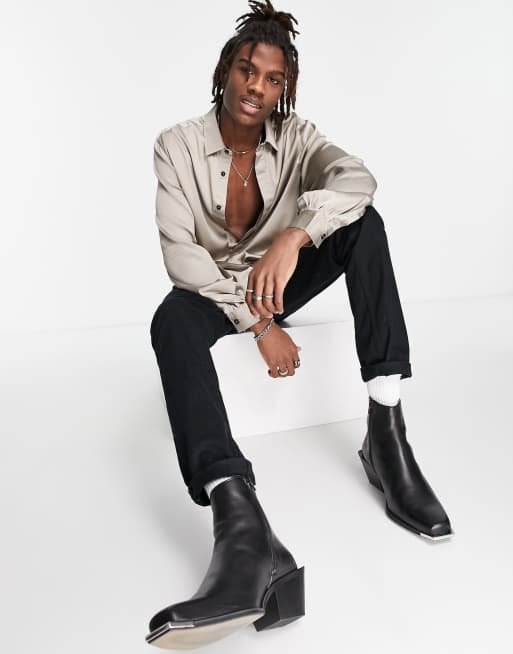 ASOS DESIGN - Camicia con maniche a campana voluminose in raso grigio
