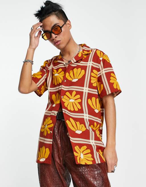 ASOS DESIGN - Camicia con rever e stampa a fiori anni '70