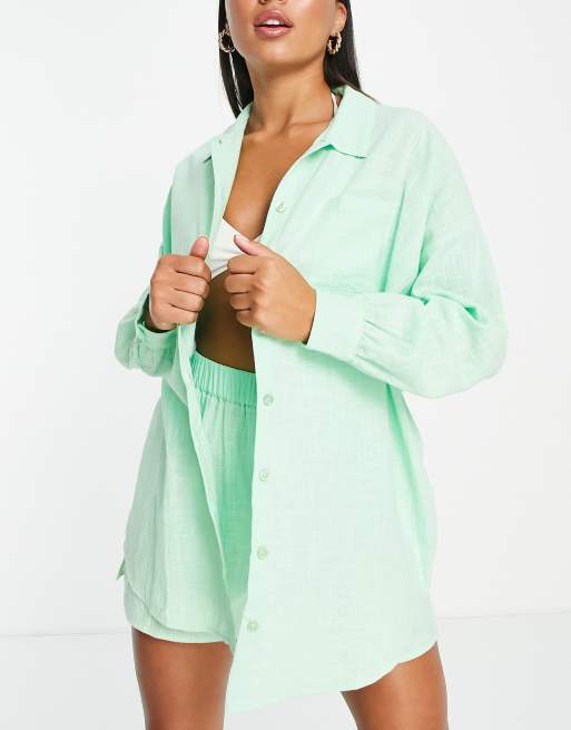 ASOS DESIGN - Camicia da mare testurizzata verde pastello con bottoni