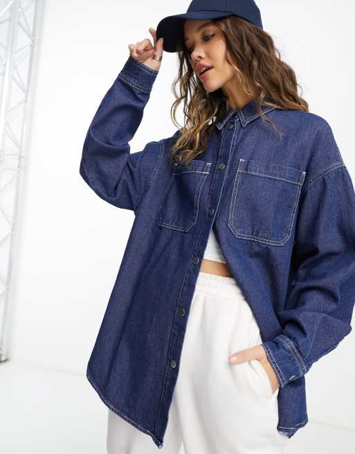 ASOS DESIGN - Camicia di jeans oversize rinse wash blu