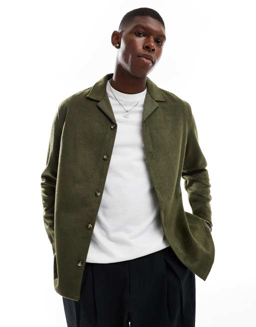 ASOS DESIGN - Camicia giacca effetto lana spazzolata kaki con rever
