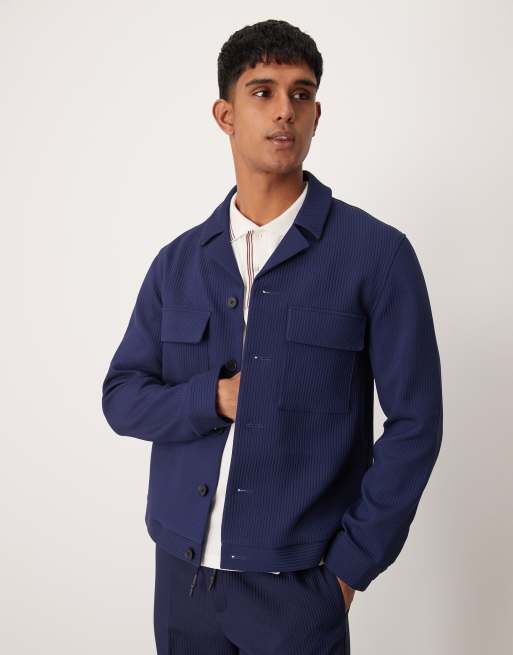 ASOS DESIGN - Camicia giacca elegante blu navy a coste in coordinato