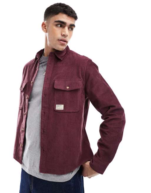 ASOS DESIGN - Camicia giacca squadrata in velluto a coste bordeaux con stemma