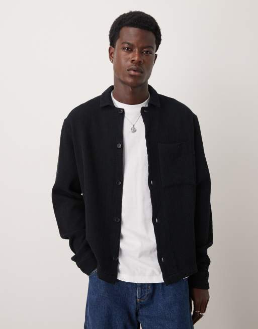 ASOS DESIGN - Camicia giacca squadrata nera testurizzata