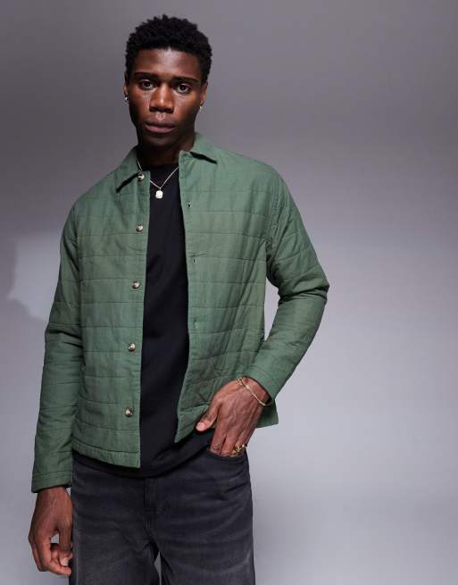 ASOS DESIGN - Camicia giacca trapuntata squadrata con colletto a rever verde