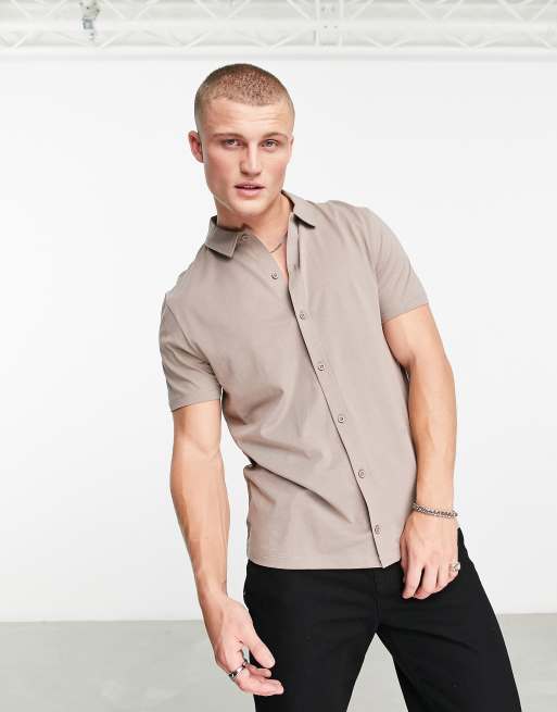 ASOS DESIGN - Camicia in jersey marrone chiaro