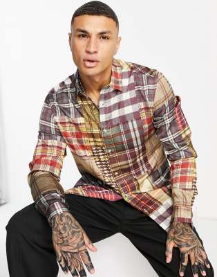 ASOS DESIGN - Camicia in raso a quadri con motivo patchwork