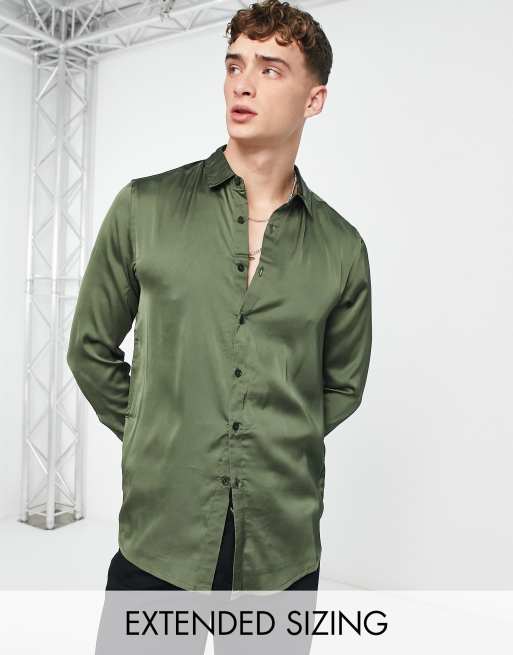 ASOS DESIGN - Camicia in raso kaki vestibilità classica