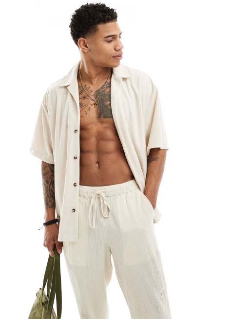 ASOS DESIGN - Camicia in spugna écru oversize con rever