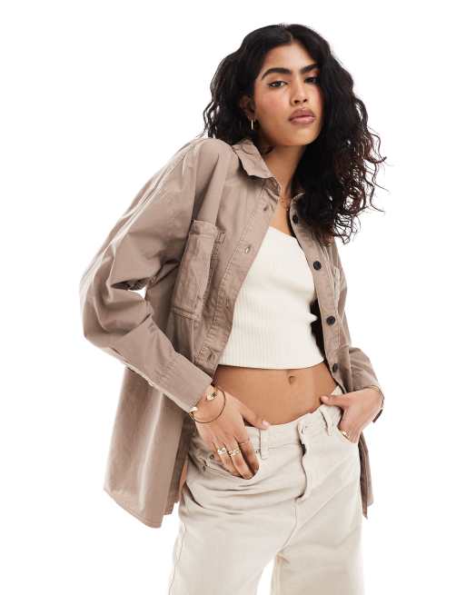 ASOS DESIGN - Camicia multitasche color sabbia slavato