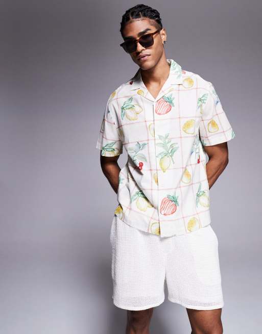 ASOS DESIGN - Camicia oversize beige con rever e stampa a di frutta
