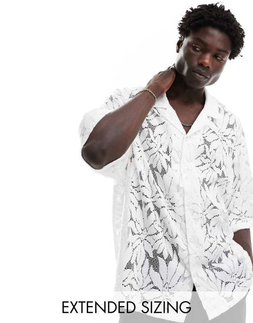 ASOS DESIGN - Camicia oversize bianca in pizzo con rever