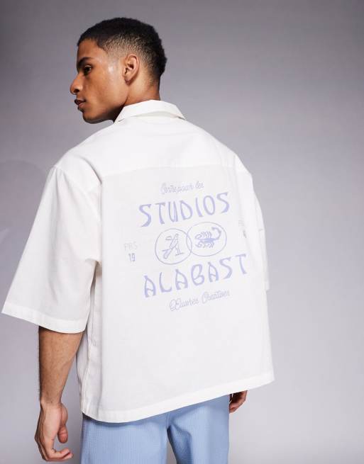 ASOS DESIGN - Camicia oversize crema con rever e stampa