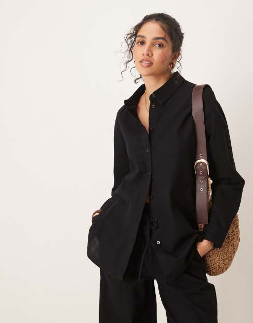 ASOS DESIGN - Camicia oversize effetto lino nera in coordinato